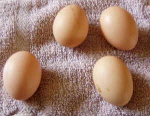 de eerste eieren van de hen ( niet van de haan dus)