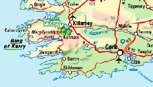zuidoostelijke punt van Ierland.Via Bantry en Kenmare , over